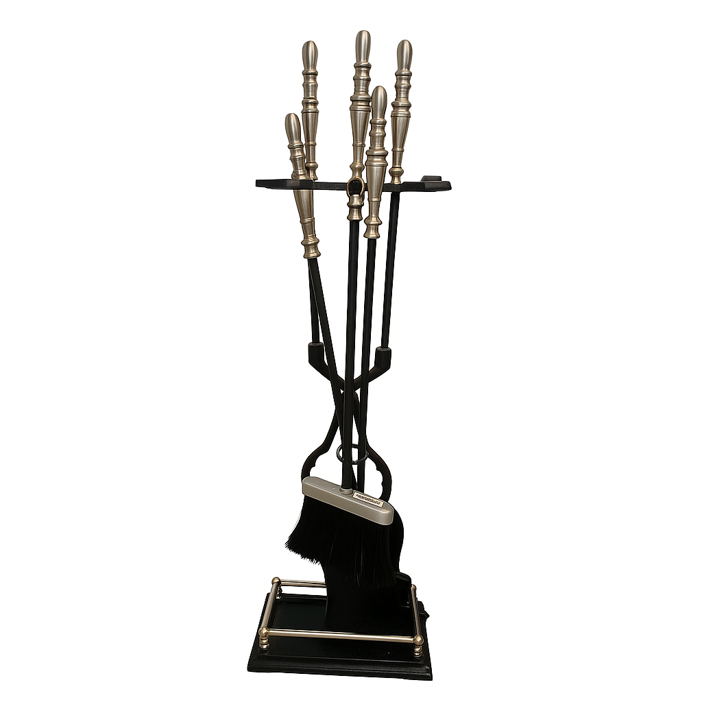 Κρεμανταλάς - Σετ 4 Εργαλείων Τζακιού Μαύρο - Χρωμέ
