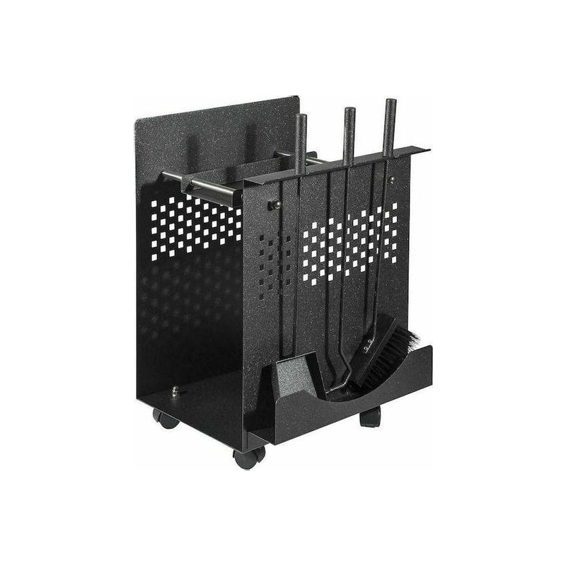 Σετ εργαλείων τζακιού: Περιλαμβάνει φτυάρι, πυρολαβίδα/λαβίδα, πόκερ/σκουπάκι (βούρτσα) – αποθηκεύονται επάνω στο τρόλεϊ