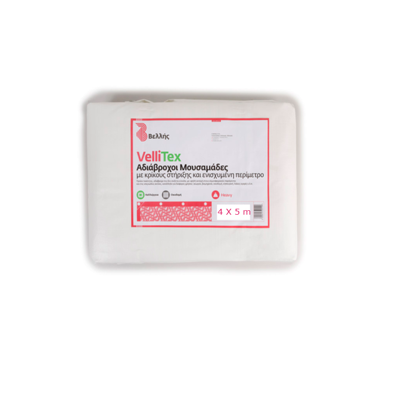 Μουσαμάς αδιάβροχος σε λευκή απόχρωση με διάσταση 4Χ5m εξαιρετικής αντοχής με κρίκους στήριξης, ενισχυμένο περιμετρικά με υψηλή αντίσταση στην ηλιακή ακτινοβολία και στο νερό. Κατάλληλος για προστασία των επίπλων κήπου κατά τους χειμερινούς μήνες, για τα μηχανήματα, τα ξύλα που προορίζονται για καύση καθώς και για αγροτική χρήση.