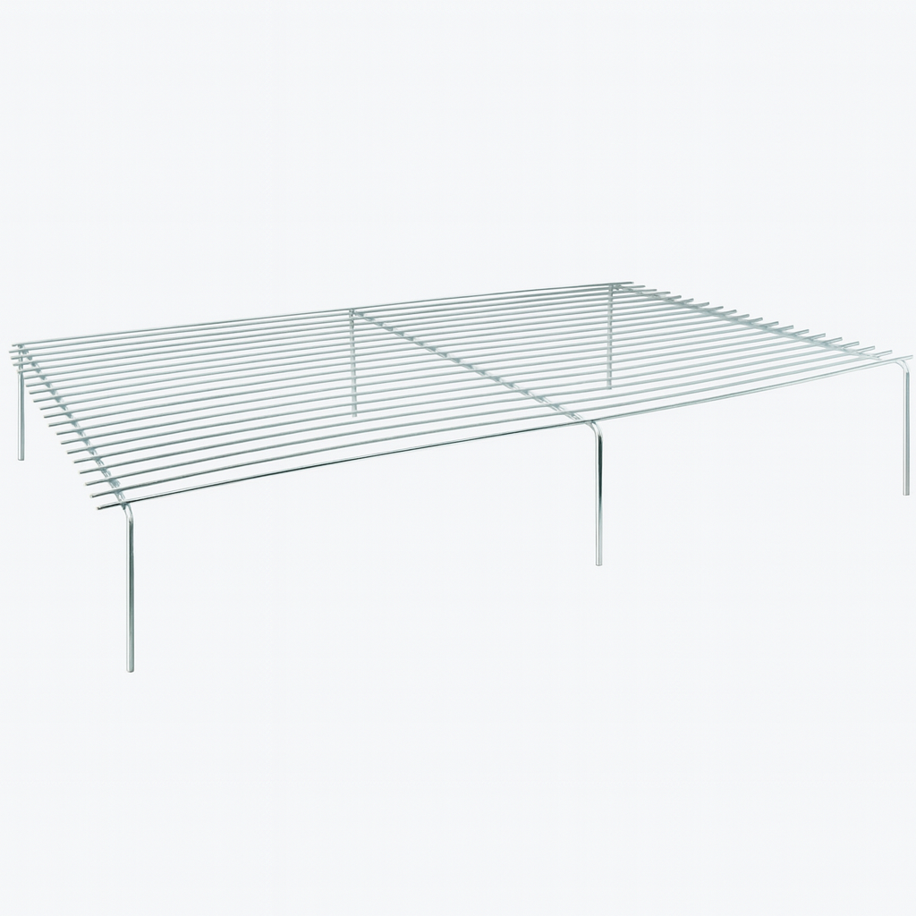 Μεταλλική σχάρα/βάση ψησίματος με ποδαράκια, διαστάσεων 70 × 43 × 12,5 cm. Ιδανική για ψησταριές κάρβουνου ή ξύλου υπερυψώνει το φαγητό για καλύτερη κυκλοφορία αέρα και ομοιόμορφο ψήσιμο.