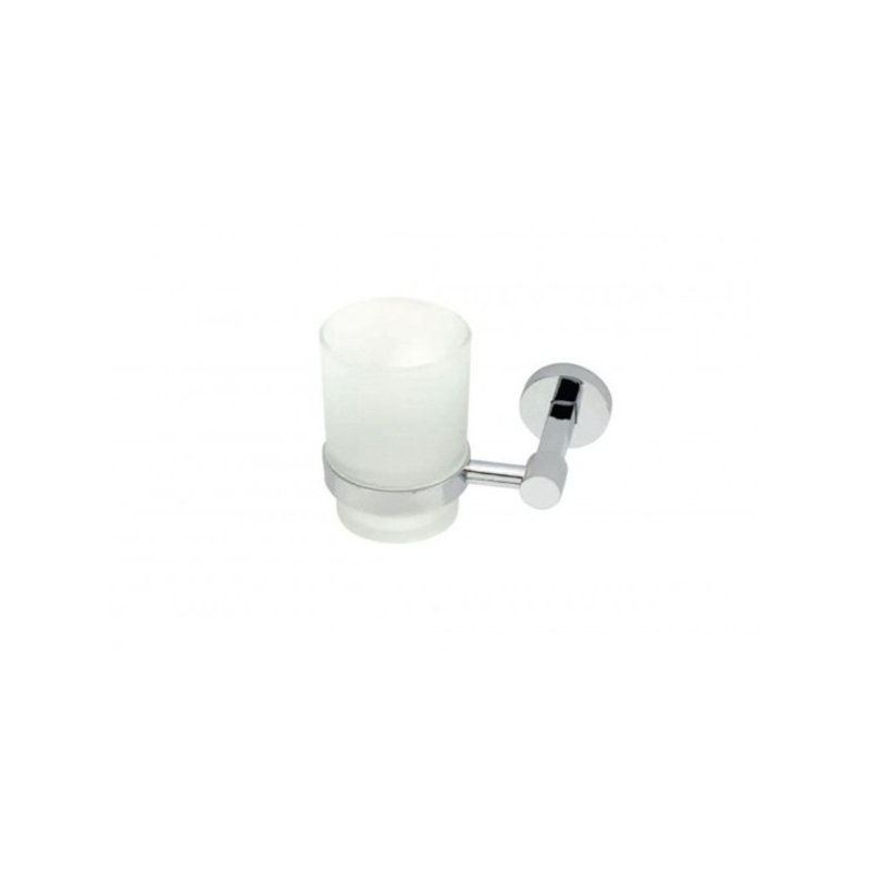 Elegant bathroom glass holder with a round base, nickel finish and satin glass. Ideal for everyday use and saving space next to the sink.
